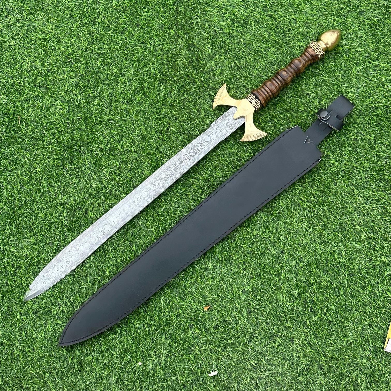 The sword features a premium Cooper wire handle, providing a firm, comfortable grip. The brass guard and bolsters add an extra layer of elegance, making this piece a true work of art. With an overall length of 30", this sword combines power and beauty, ideal for collectors and enthusiasts alike.