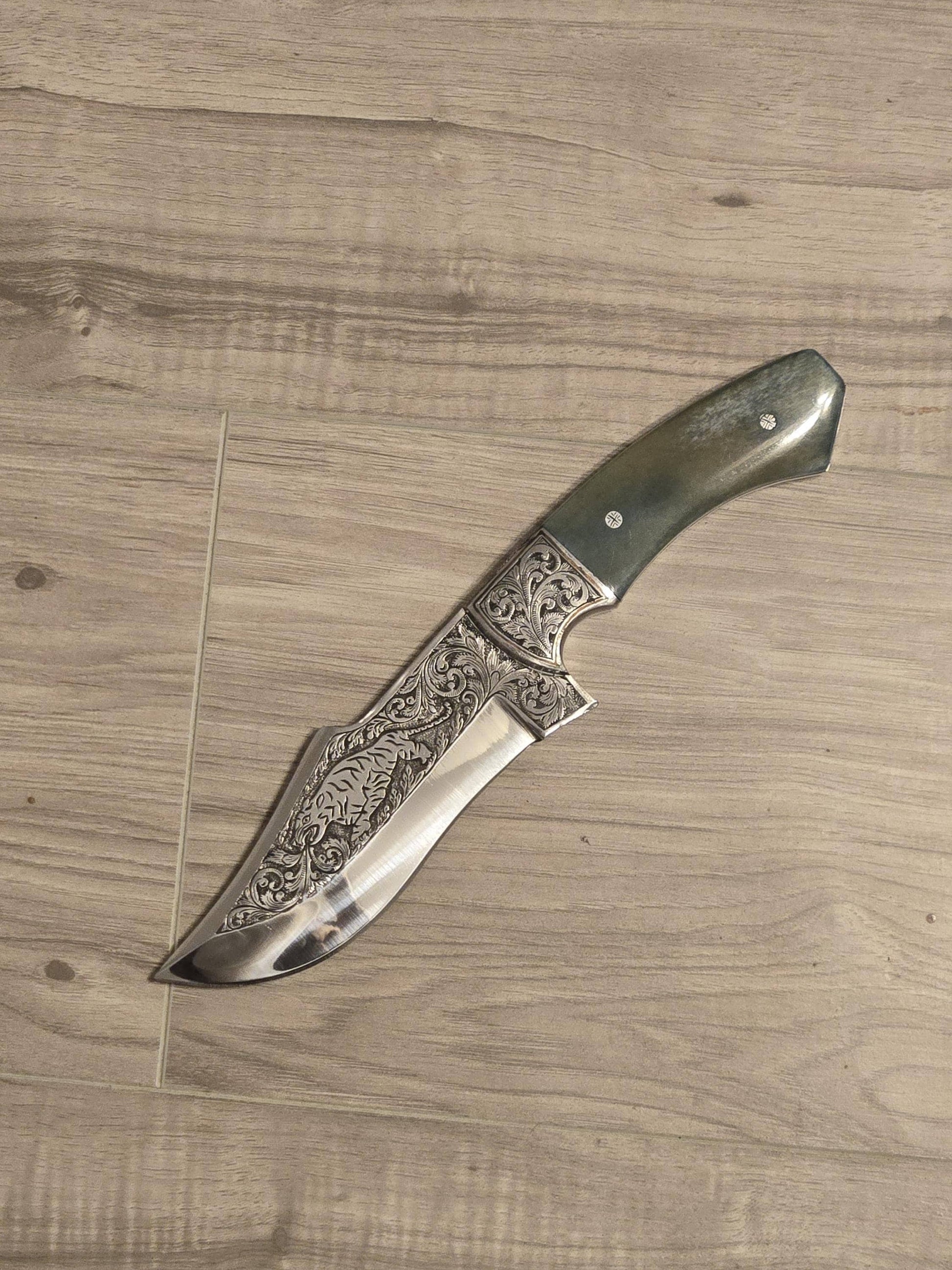 This high-quality, handmade knife is a true work of art, combining durability with intricate detailing. Whether you're a collector, an outdoor enthusiast, or searching for the perfect gift, this knife is designed to impress.