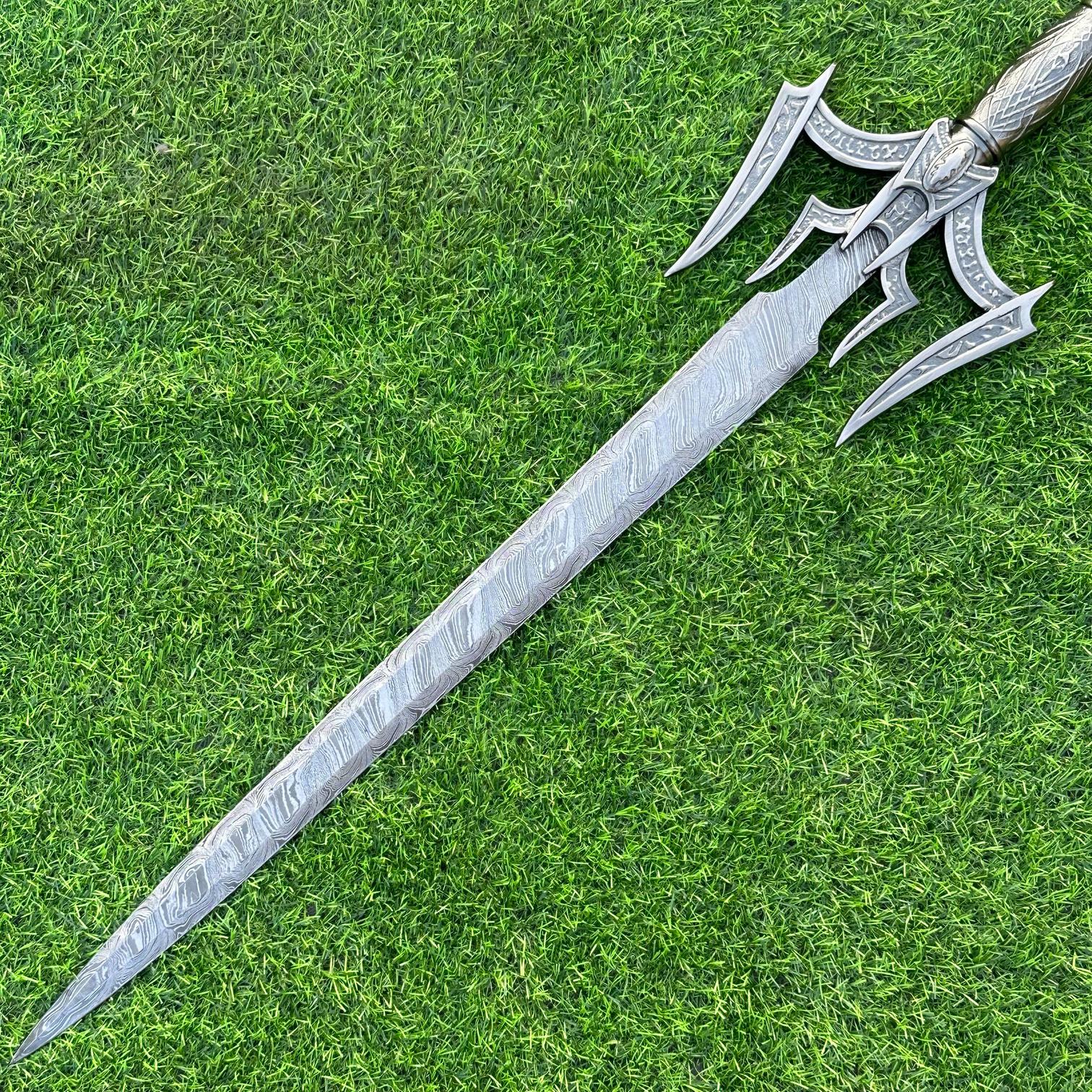 Experience the perfect blend of history and craftsmanship with this hand-forged Damascus steel Viking sword. Inspired by ancient Norse warriors, this beautifully crafted 33-inch sword is a tribute to medieval artistry. Meticulously forged by skilled artisans, each blade is unique, making it an ideal collector’s piece or a memorable gift for enthusiasts.