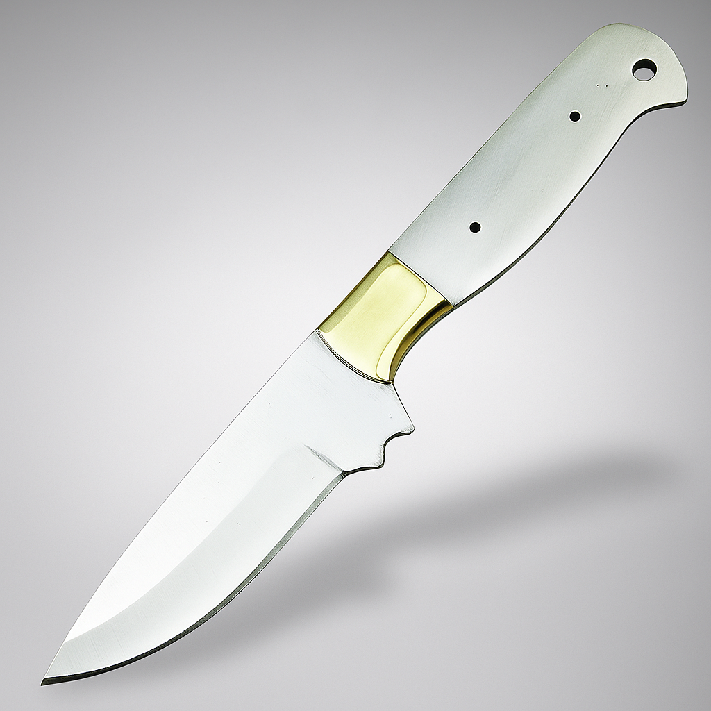 Craft your own custom knife with this high-quality 9-inch blank blade made from durable J2 steel. Designed for knife makers and DIY enthusiasts, this blank blade features a pre-attached brass bolster, offering both structural support and an elegant look.