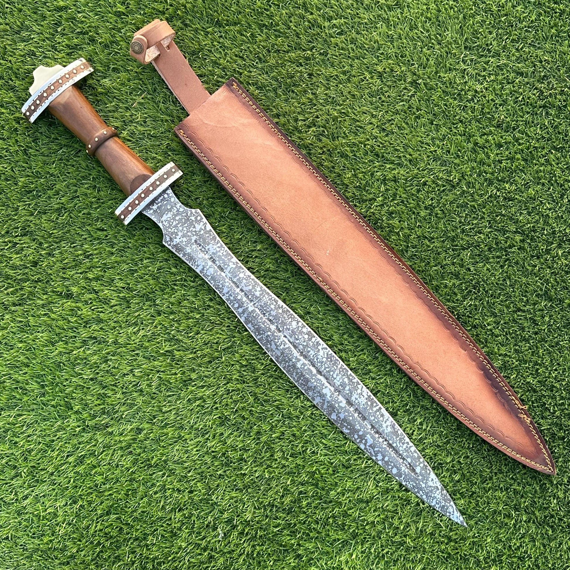 Order now to secure this unique Viking sword, crafted with care and ready to ship. We offer personalized customer support and ensure careful packaging, so your collectible arrives in perfect condition, ready to impress.Handmade Custom Sword – 28" Overall Length, J2 Steel Blade, Natural Wood Handle, Viking Style Sword, Collectible Sword with Leather Sheath
