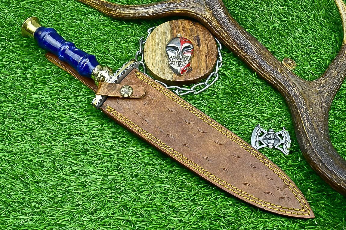 Order now to secure this distinguished hunting Bowie dagger, perfect as a wedding gift or a standout addition to your collection. We offer personalized service with careful packaging and prompt shipping to ensure your satisfaction.Hand Forged Damascus Dagger Knife 15 Inch | Premium Resin Handle with Brass Bolsters & Butt Cap | Handmade Hunting Knife | Collectible Damascus Blade | Tactical Outdoor Knife | Gift for Him