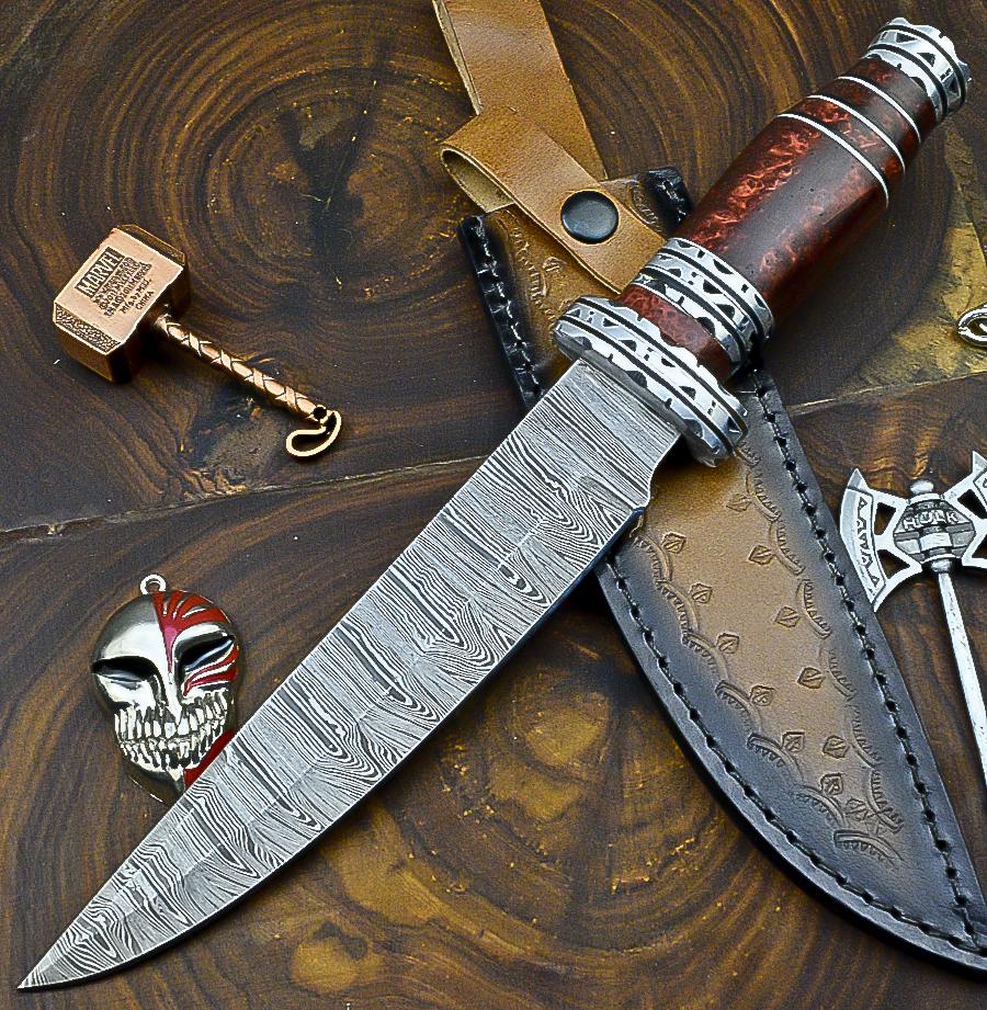 Custom Handmade 12" Damascus Steel Knife with Resin Handle, Anniversary gift, Gift for husband, Fathers day gift, Key Features: Overall Length: 12 inches, designed for precision and versatility. Blade Material: High-quality Damascus steel, known for its sharpness, strength, and unique patterns. Handle: Beautifully crafted resin handle for a comfortable and secure grip. Sheath: Includes a premium hand-crafted leather sheath for safe storage and easy transport. Craftsmanship: This handmade Damascus steel knife showcases expert craftsmanship, blending functionality and style. Its compact size and stunning design make it perfect for collectors, outdoor enthusiasts, and those who appreciate quality tools. Perfect Gift Idea: An excellent choice for special occasions like Christmas, birthdays, anniversaries, and Father’s Day. It’s a thoughtful gift for anyone who values unique, handmade items. Care Instructions: To maintain the blade, sharpen using a Diamond Wet Stone at a 20-degree angle. Clean with soap and water after use, dry thoroughly, and apply gun oil before storing away from the sheath. Handmade Damascus knife, 12-inch knife, resin handle knife, custom steel knife, leather sheath knife, Damascus blade, anniversary gift, birthday gift, Christmas gift, Father's Day gift, gift for him, collectible knife, outdoor knife, premium steel knife.