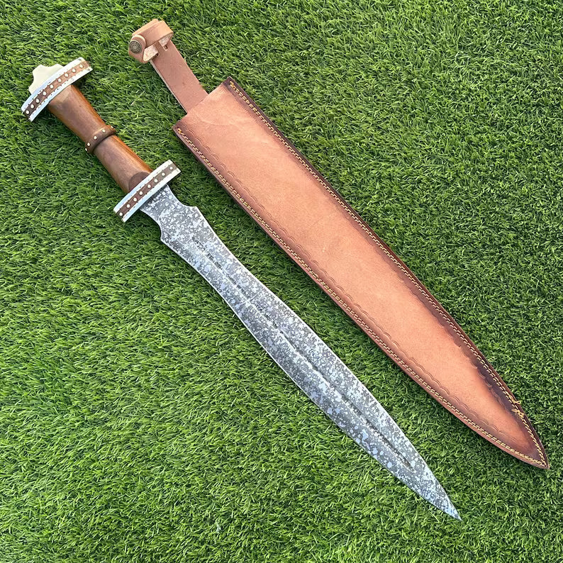 Crafted from high-carbon J2 steel, the blade promises lasting sharpness and resilience, while the natural wood handle ensures a comfortable grip and timeless aesthetic. Measuring 28 inches in total length, it’s perfect for display or light ceremonial use. The included leather sheath adds portability and protection, making this sword easy to carry and maintain. Whether you’re a collector or searching for a meaningful gift, this sword is designed to endure and impress.
