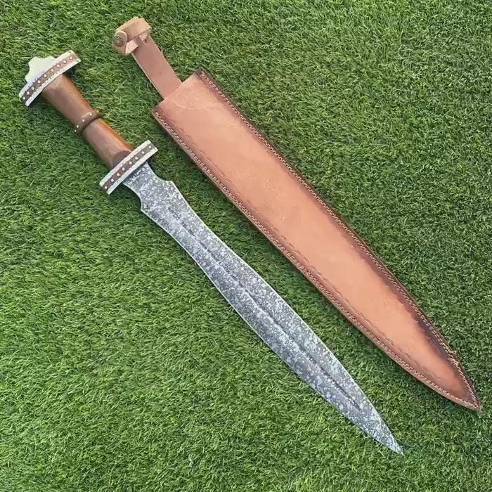 Versatile Blade Designs: Our collection features a variety of expertly forged blades to suit every need. Discover the classic Bowie-style clip-point blades, perfect for hunting and survival tasks, or the versatile drop-point hunting knife designed for precision. For the collector, we offer a unique historical-style short sword or dagger with a distinct, hammered-finish blade that commands attention. All blades are crafted from durable high-carbon stainless steel to ensure a sharp, long-lasting edge.