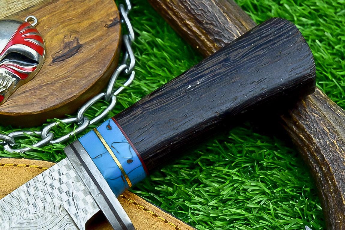 - Hand-forged Damascus steel blade for strength and beauty