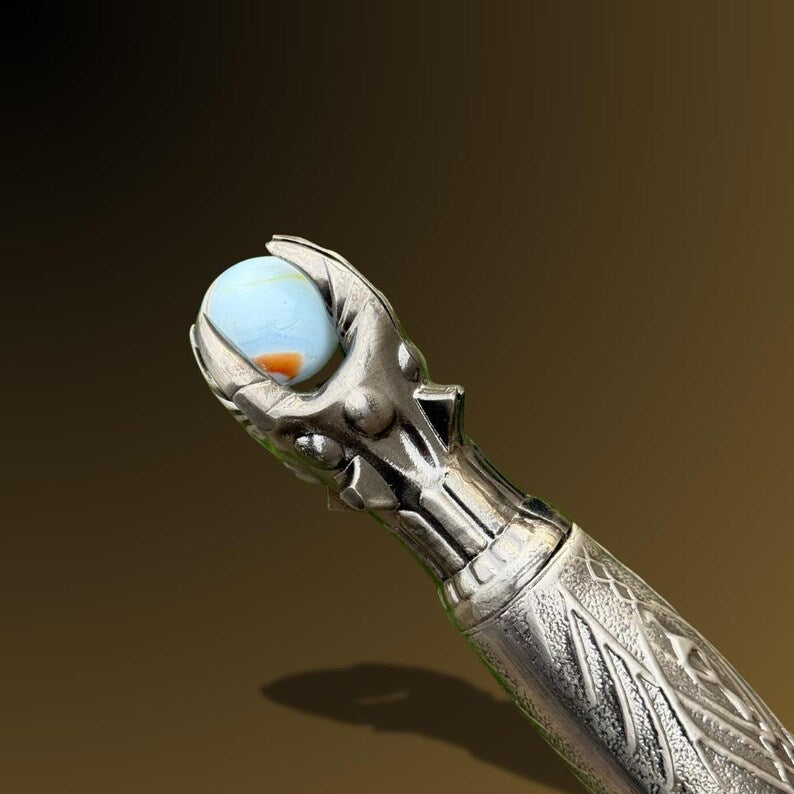 Handle, Guard & Pommel: Polished Metal with Gemstone