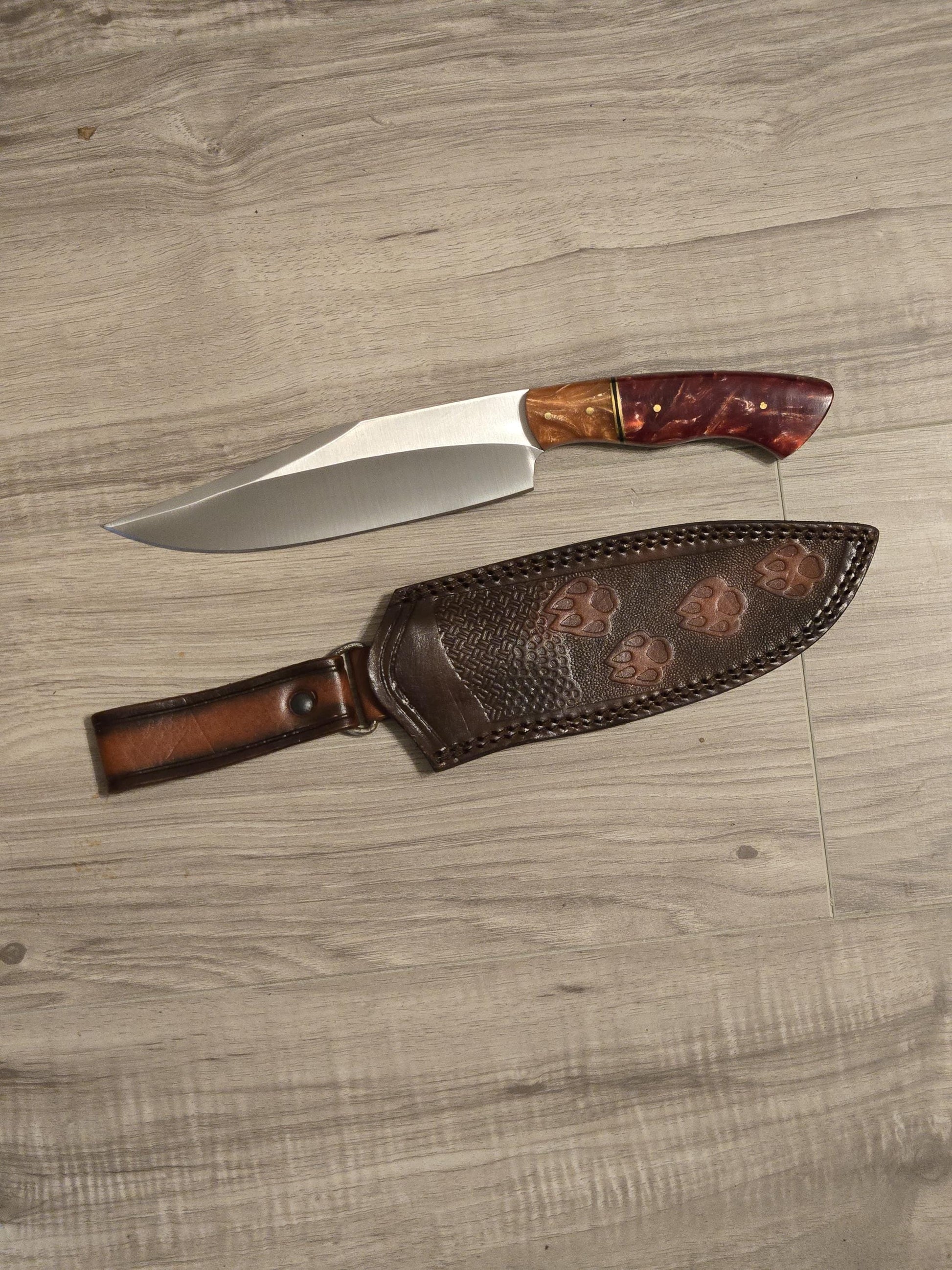 Upgrade your collection with this handcrafted hunting knife, built for durability, precision, and style. Featuring a sharp D2 steel blade, a premium Resin handle, and a genuine leather sheath, this knife is a perfect companion for outdoor adventures, collectors, and gifting.
