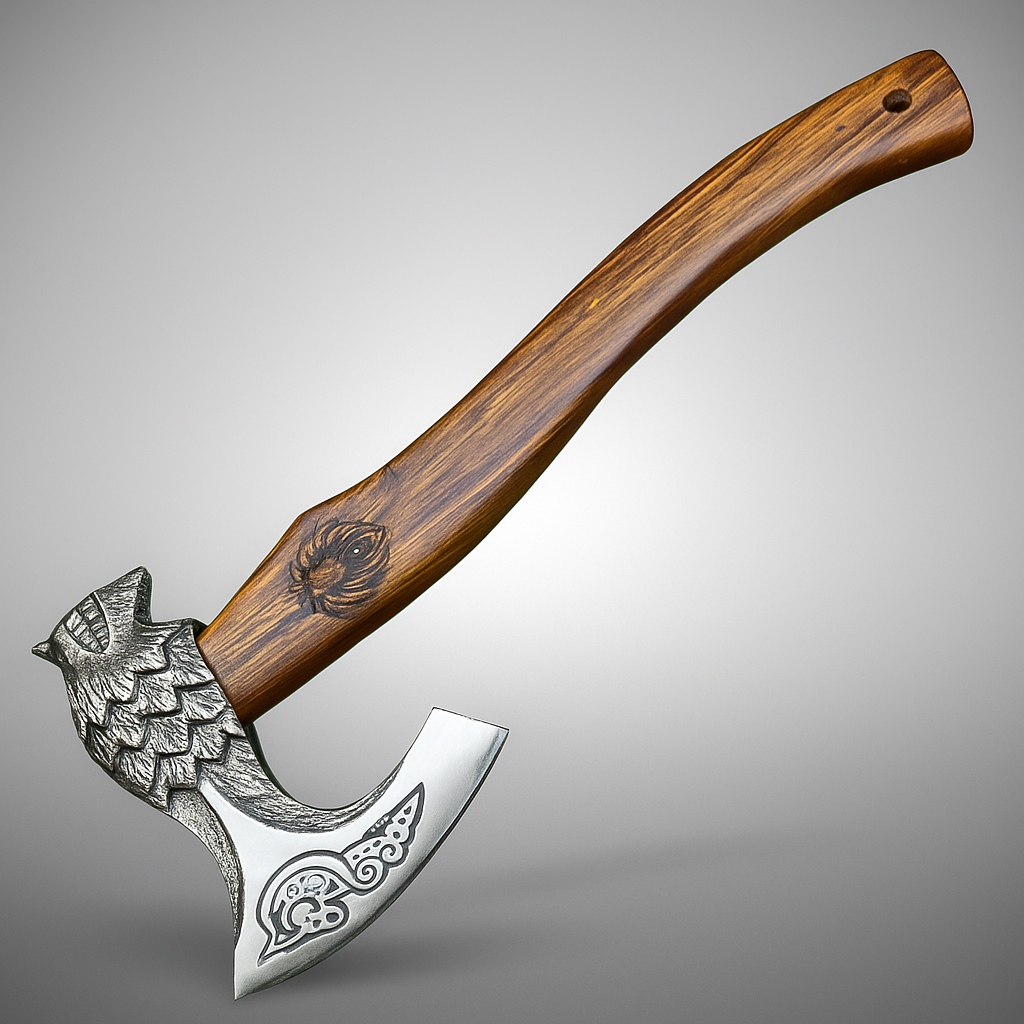 The 21-inch handle is crafted from premium rosewood and wrapped in genuine leather for a secure and comfortable grip. A custom leather sheath is included, making it ideal for safe carry, gifting, or display. Whether you're camping, collecting, or decorating, this Viking axe delivers strength and style.